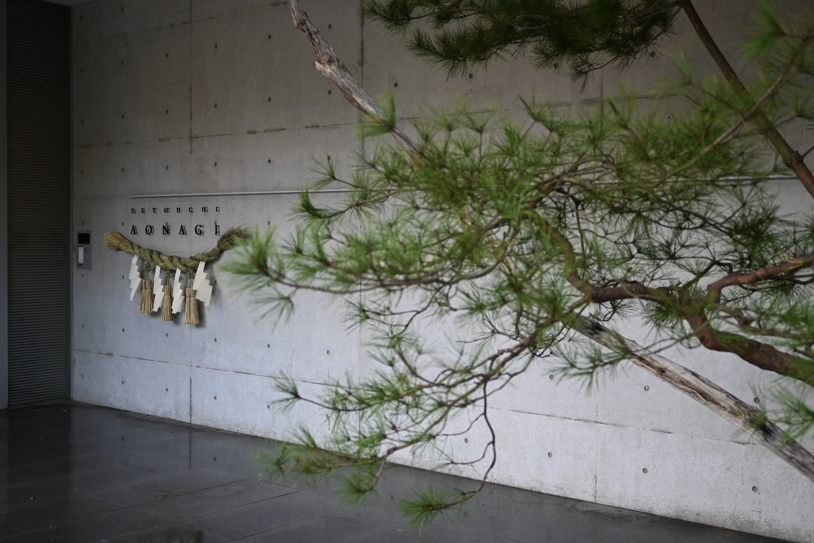 土地の植物と日本の文化を通して、伝統的な正月の風景を青凪という現代の空間の中に表現しました。