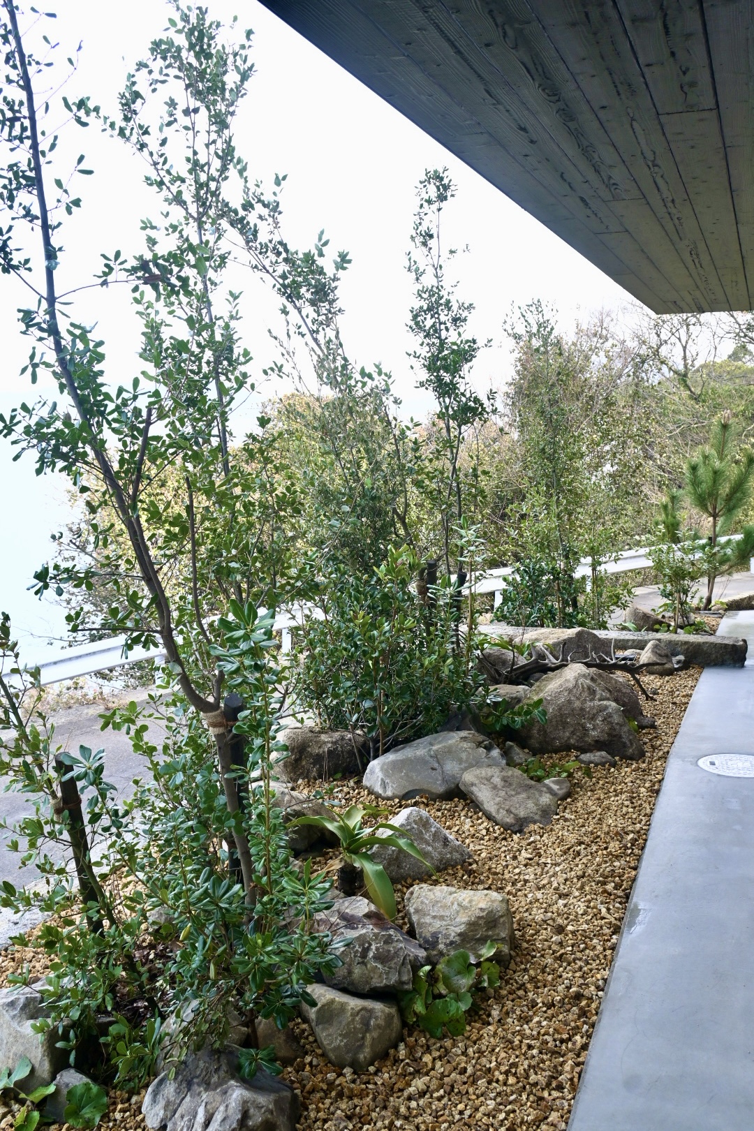 建物2階からは、樹木の成長とともに、やがて木々の上から海を見下ろす景色が現れる構成となっています。