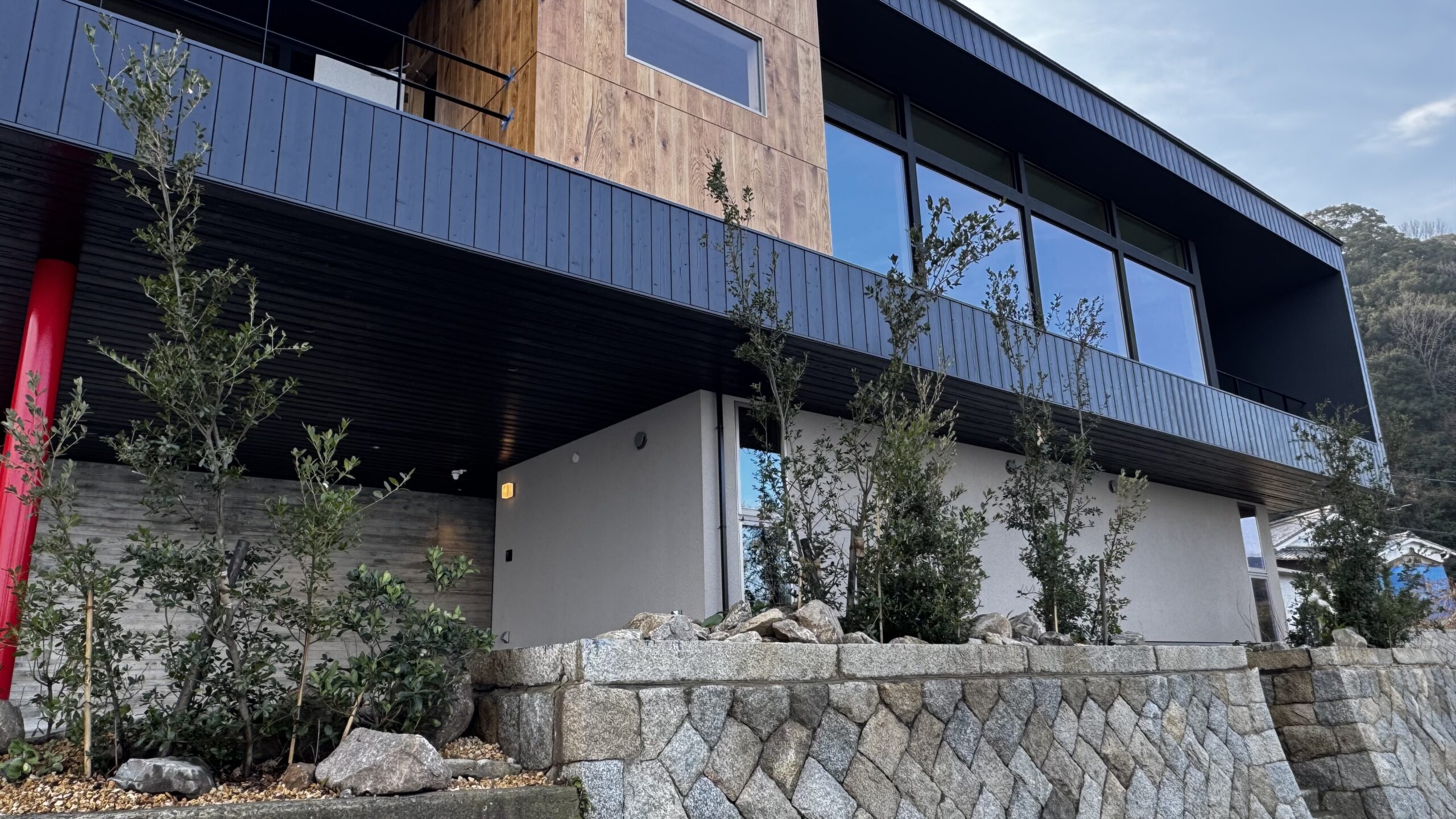 この地域に群生するウバメガシと、安山岩・花崗岩が混在する地質を手がかりに庭を構成しました。